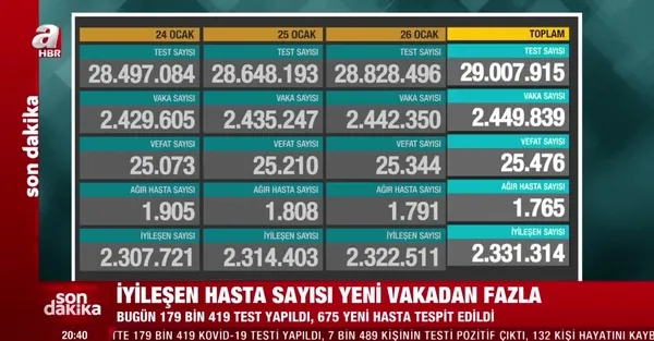 Böylece Türkiye'de koronavirüs nedeniyle hayatını kaybedenlerin sayısı 25 bin 476'ya, toplam vaka sayısı ise 2 milyon 449 bin 839'a yükseldi.