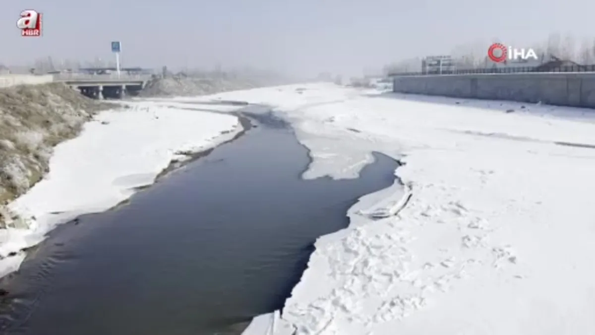 Ağrı'da dondurucu hava nedeniyle kent merkezinde ağaçlar ve bitkiler kırağı tutarken, evlerin çatılarında metrelerce buz sarkıtları oluştu.