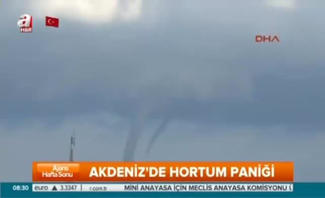 Akdeniz'de hortum paniği Hatay'ın İskenderun ilçesinde yağışın ardından körfezde hortum oluştu. Hortum, cep telefonu ile saniye saniye görüntülendi.