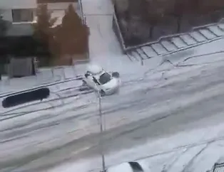 Son dakika haberi... Başkent'te gece başlayan kar yağışı sokakları buz pistine çevirdi. Buz pistine dönen caddelerde sürücüler zor anlar yaşadı. Yaşanan kaza anı bir vatandaş tarafından görüntülendi