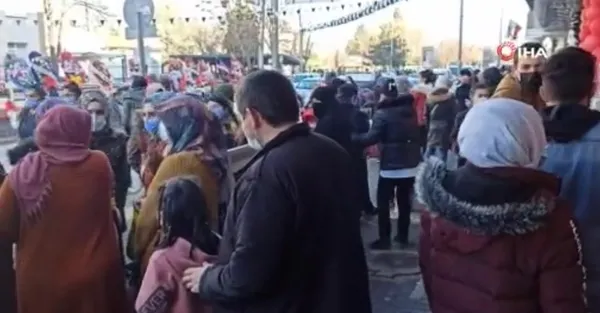 Kuyrukta bulunan yüzlerce vatandaş, indirimli ürünleri alabilmek için dakikalarca sırada bekledi.