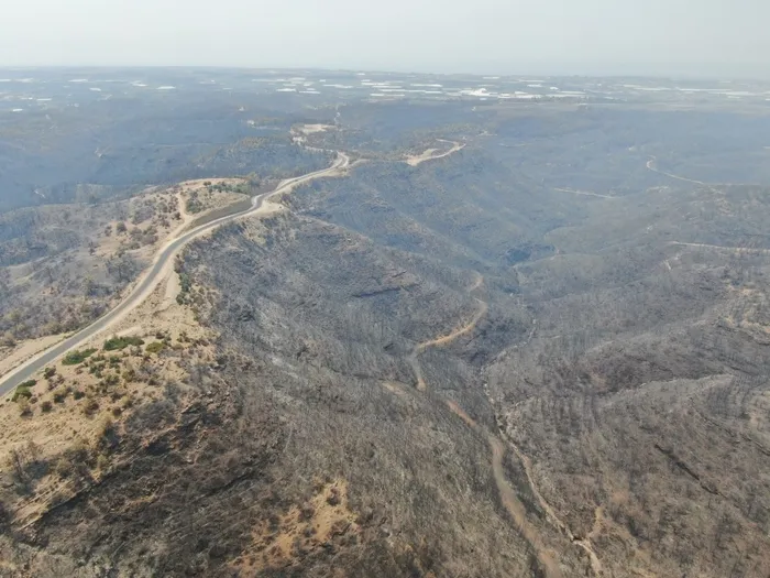 Antalya Manavgat'ta söndürülen alanlar havadan görüntülendi. Milyonlarca ağacın yandığı alanlar simsiyah bir tabakayı andırdı. Baraj göletinin maviliği ve siyah alanlar drone ile görüntülendi.