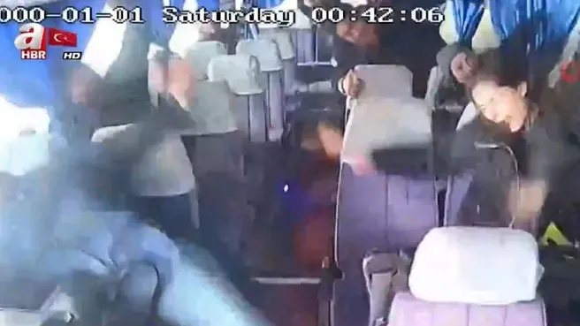 Antalya Kemer'de bir minibüs, sollamak istediği diğer yolcu midibüsüne yandan çarptı. Çarpmanın şiddetiyle kontrolden çıkan midibüs devrildi. Kaza anı minibüsün güvenlik kamerasına yansıdı.