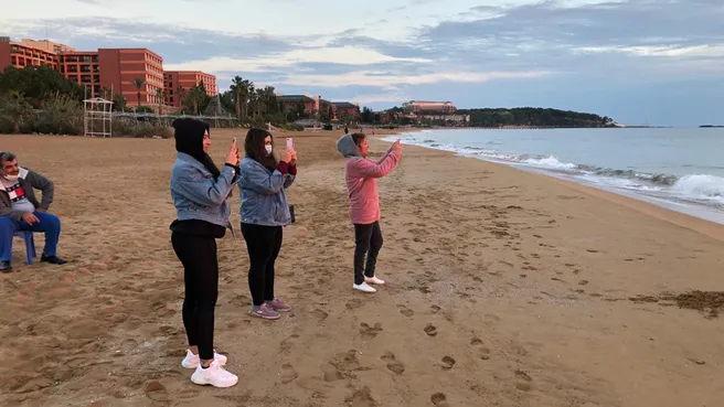 Antalya'nın Alanya ilçesinde sezon bitip tatilciler plajı boşaltınca sahiller onlara kaldı. Vatandaşlar ise bu manzarayı görünce o anları ölümsüzleştirmek için hemen telefonuna sarıldı. Bakın nasıl gösteri yaptılar?