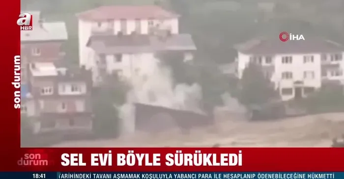 Artvin'in Arhavi ilçesinde bugün yaşanan selde dere kenarındaki bir ev sel sularına kapıldı. O anlar cep telefonu kameraları tarafından saniye saniye kaydedildi.
