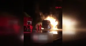 Balıkesir'de 5 kişinin hayatını kaybettiği otobüs faciasının ardından bugün saat 00.30 sıralarında İzmir - Çeşme Otoyolu üzerinde seyir halindeki bir tur otobüsünde yangın çıktı.
