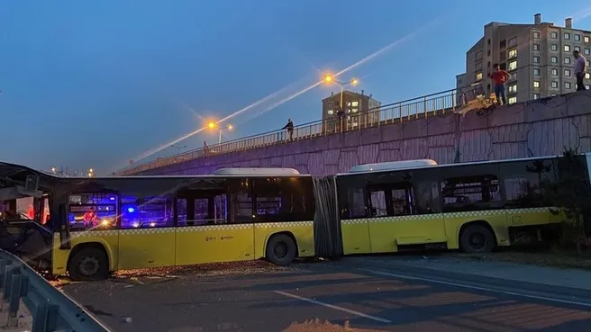 Başakşehir'de İETT otobüsü bağlantı yoluna düştü