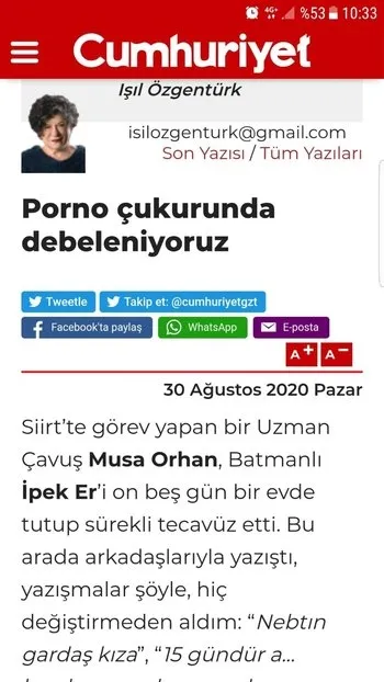 CUMHURİYET YAZARI IŞIL ÖZGENTÜRK HAKKINDA SUÇ DUYURUSU