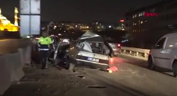 Yolda hızla ilerlerken sürücüsünün direksiyon hakimiyetini kaybettiği 34 MM 7071 plakalı otomobil, bariyerlere çarptı.