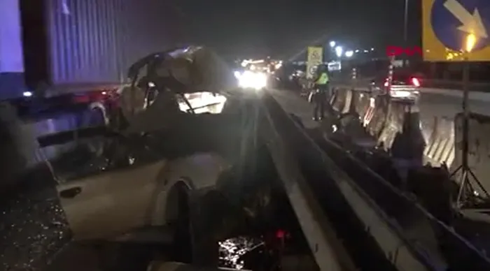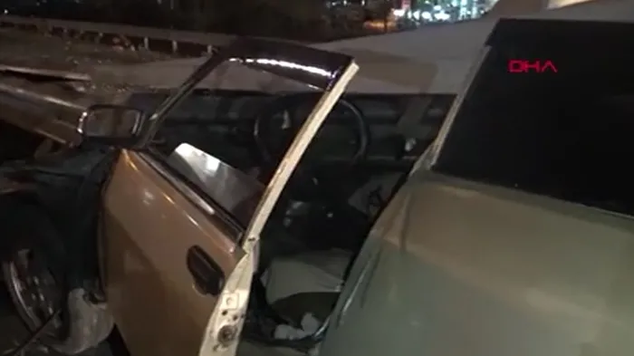 Bariyerler otomobilin ön camından girerek arka camına kadar girdi. Sürücüsünün yaralandığı otomobil araç metal yığınına döndü.