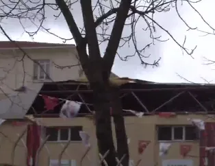 Beylikdüzü’nde şiddetli esen rüzgar bir ilkokulun çatısının bir kısmını uçurdu. Çatının parçalarının uçma anı kameraya yansırken, şans eseri öğrencilerin dışarıda olmaması faciayı önledi.