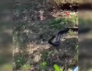 Havaların ısınmasıyla birlikte yurdun çeşitli noktalarında yılanlar ortaya çıkmaya başladı. Son olarak bir evi mesken tutan yılanlar ağaçların tepesine kadar çıkıyor. İşte o ilginç görüntüler…