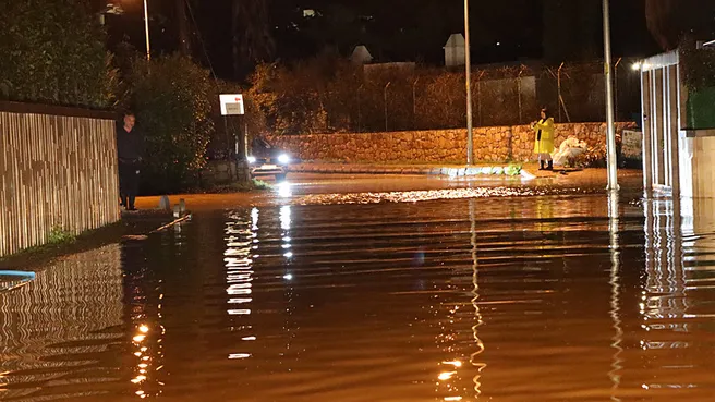 Muğla'nın Bodrum ilçesinde gece saatlerinde etkili olan sağanak yağış hayatı olumsuz etkiledi. Cadde ve sokaklar göle dönerken, birçok araç ilerlemekte güçlük çekti. Yağış nedeniyle bir evin istinat duvarı çökerken, çevrede bulunan 4 ev tedbir amacıyla tahliye edildi.