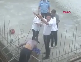 Çin’de bir inşaat işçisi, yaklaşık 4 metre yükseklikten inşaat alanındaki parmaklıkların üzerine düştü. Boynuna ve göğsüne çelik çubuk saplanan işçi mucizevi bir şekilde hayatta kaldı. İşçinin kurtarılma anları ise kameraya yansıdı.