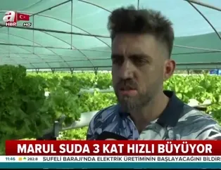 Bursa'nın İnegöl ilçesinde suda marul yetiştiriyor. Bu yöntemle normalinden 3 kat hızlı marul üretebiliyor.