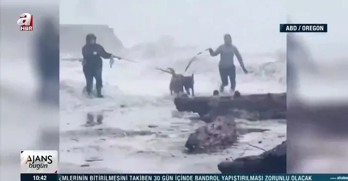 ABD'nin Oregon sahilinde yaşanan gelgit kameralara yansıdı. O sırada sahilde köpekleriyle birlikte yürüyüş yapan kadınların zor anları sosyal medyada en çok izlenenler arasına girdi.