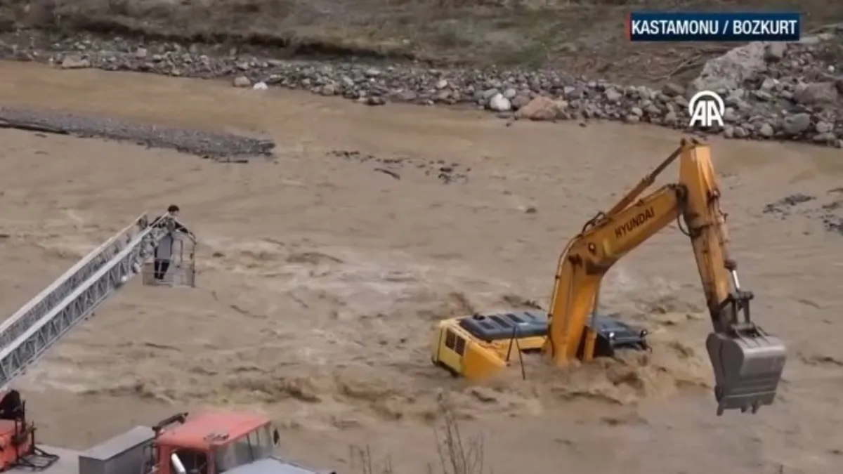 Kastamonu'nun Bozkurt ilçesinde Ezine Çayı'nın debisi yükseldi. Dere yatağında çalışan özel bir firmaya ait ekskavatör operatörü suda mahsur kaldı. İşte zamana karşı verilen kurtarma anları. A HABER UYGULAMASINI İNDİRMEK İÇİN TIKLAYIN