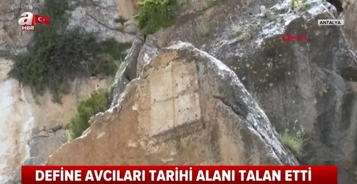 Antalya'nın Korkuteli ilçesindeki tarihi yapılar define avcıları tarafından tahrip edildi. Roma dönemine ait kabartmalar, kazma kürekle kırılarak yok edildi.