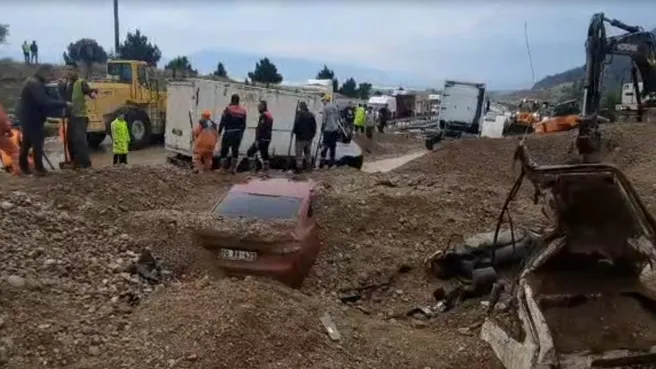 Denizli-Afyonkarahisar yolunda heyelan nedeniyle iki araç toprak altında kaldı! 1 ölü