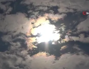 Mercek gibi bulutların arasında kayan güneşin çevresindeki ışınlar da dikkat çekti.
