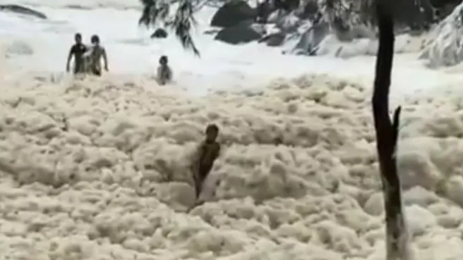 Son dakika haberi... Avustralya'nın doğu kıyılarında yaşamı etkileyen fırtınada bazı plajlar, deniz köpüğüyle kaplandı. Halk, nadir ortaya çıkan bu olayı görüntülemek için sahile akın etti.