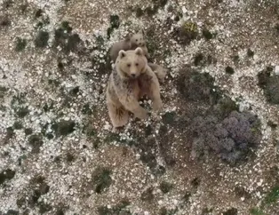Erzincan'ın Çayırlı ilçesinde köyün yakınlarına kadar gelen anne bozayı ve 3 küçük yavrusu, koyun sürüsünü otlatan Mert Yılmaz tarafından drone ile havadan görüntülendi. A HABER UYGULAMASINI İNDİRMEK İÇİN TIKLAYIN