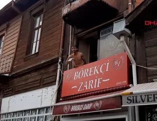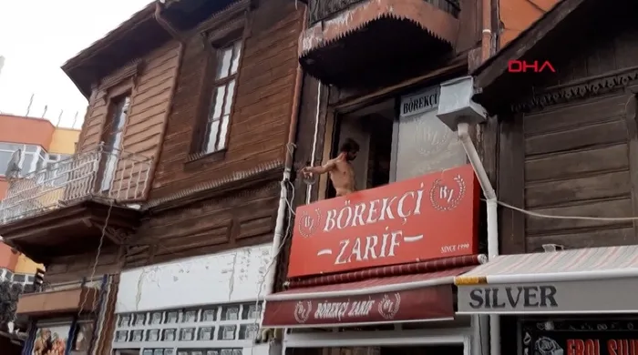 İşyerinden aldığı bir demir bardak ve elindeki satırı da pencereden kendisini görüntüleyen gazetecilere atan Şenol S., gelen polis ekiplerince gözaltına aldı.