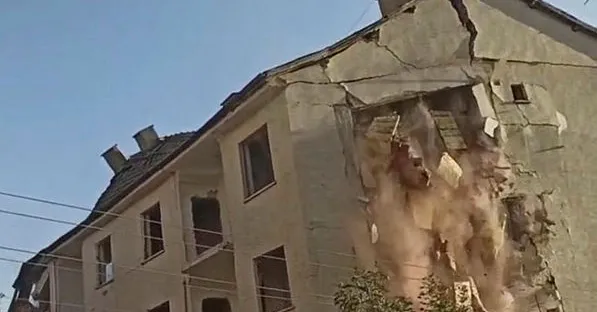 Elazığ'da kontrollü yıkım! Hasarlı bina böyle çıktı