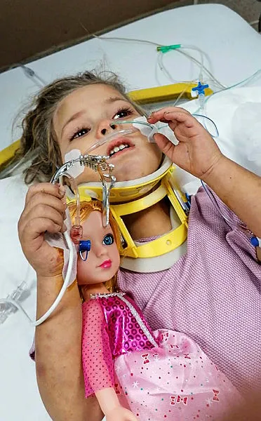 Görüntülerde ambulansa binerken "Anne" diye seslenen Ayda, sağlık görevlisinin "Ne istiyorsun canım?" sorusu üzerine "Yemek" yanıtı veriyor.
