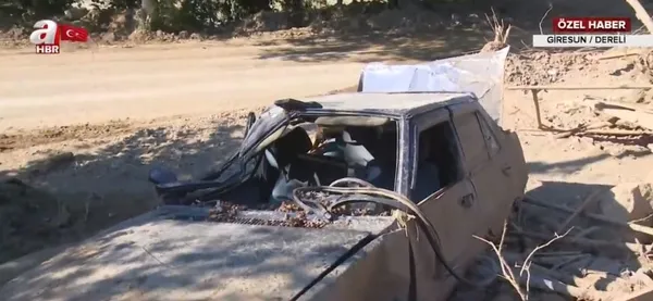 Giresun'da yaşanan sel felaketinde mucize kurtuluş! Araca inşaat demiri saplandı
