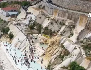 Giresun'un Dereli ilçesi, travertenler oluşturuldu. Turkuaz renkli göletlerin bulunduğu alan yerli ve yabancı turistleri ağırlıyor. A HABER UYGULAMASINI İNDİRMEK İÇİN TIKLAYIN