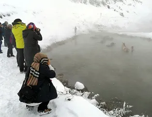 Bitlis'in Güroymak ilçesinde dondurucu soğuklar hayatı olumsuz etkilerken, atlar ve mandaların kaplıca keyfi fotoğrafçıların büyük ilgisini çekiyor. Türkiye’nin dört bir tarafından gelen fotoğrafçılar, kaplıcada yıkanan mandaların ve atların sırtına çıkarak takla atan ve akrobatik hareketler yapan gençlerin fotoğraflarını çekmek için sıraya giriyor. İşte mandaların kaplıca keyfi...