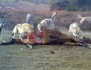 Görüntüler Türkiye'den! Vahşi doğa belgesellerini aratmadı... Onlarca kurt yılkı atını avlayıp böyle parçaladılar
