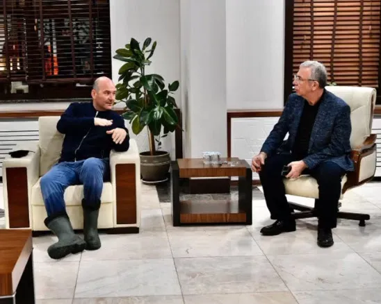 Son dakika haberi... İçişleri Bakanı Süleyman Soylu, Mansur Yavaş'ın yanına ıslanmış elbiseleriyle giderek görüştü. Orada çekilen fotoğraf ise gündem oldu.