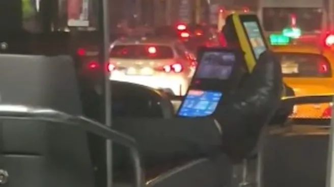 İETT otobüsü şoförünün "İstanbulkart" basılan cihazın bulunduğu alana ayağını uzatarak aracını sürmesi cep telefonu kamerasıyla görüntülendi. Seyir halindeki "622-Yenidoğan-Mecidiyeköy" seferini yapan otobüsün şoförü, sağ ayağını validatör cihazının bulunduğu bölüme uzattı. Şoförün, trafik güvenliğini tehlikeye atacak şekilde araç kullanması bir yolcunun cep telefonu kamerasıyla kaydedildi.