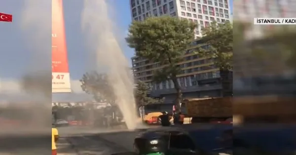 İstanbul Kadıköy'de su borusu patladı! Su metrelerce yükseğe fışkırdı
