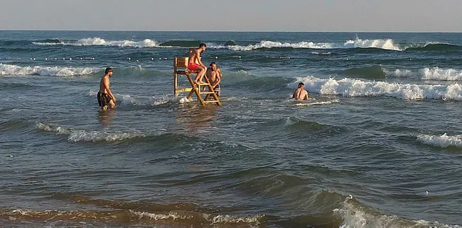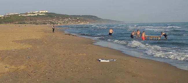 Sabah saatlerinde bile yoğunluğun görüldüğü Ayazma Plajı'nda Kumbaba bölgesine yakın bir noktada Cankurtaran ekiplerinin gözetleme kulesini yerinden söküp denize taşıyan bir grup yabancı uyruklu genç kulenin üzerinden denize atlamak için birbirleriyle yarıştı.
