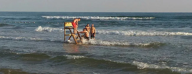 Şile, Ayazma Plajı'nda cankurtaran ekiplerinin gözetleme kulesini yerinden söküp denize taşıyan bir grup yabancı uyruklu genç kulenin üzerinden denize atlamak için birbirleriyle yarıştı.