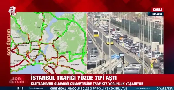 İstanbul Büyükşehir Belediyesi (İBB) trafik uygulaması verilerine göre saat 15.35 itibarıyla yoğunluk yüzde 71'lere ulaştı.