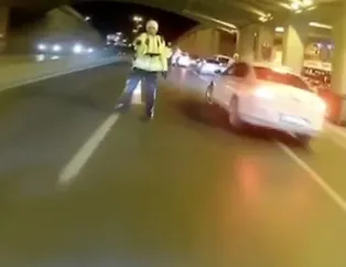 İstanbul'da trafikte dehşet anları! Polisin üzerine sürüp... |Video