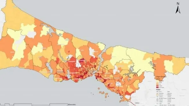 İstanbul'da hizmet sektörünün ve iş alanlarının yoğunlaştığı Avrupa Yakası'nda, kentsel yoğunluğa bağlı risk Anadolu Yakası'na göre çok daha yüksek oldu.