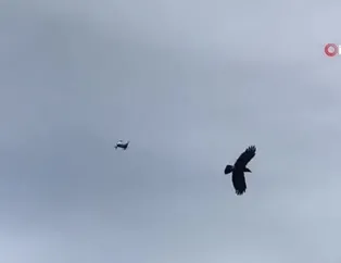 Drone'nun sesinden ve renginden dolayı bir kuş olduğunu zanneden karga havada drone'nu düşürmeye çalıştı. Karganın saldırısı ise renkli anlara sahne oldu. O anlar ise cep telefonu kameralarına anbean yansıdı.