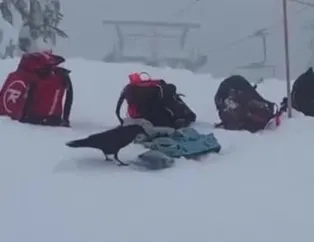 Görüntüler, Kanada'nın batı Vancouver bölgesinde bir kayak merkezinde kayda geçti. Kayakçıların, orta yere bıraktığı çantaları fark eden karga, fermuarı açık bir çantayı gözüne kestirdi.