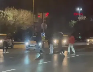 Kartal Sahil yolunda 5 kişi, yolun karşısına 'birdirbir' oynayarak geçti. O anlar diğer sürücüler tarafından cep telefonu kamerasına kaydedildi.