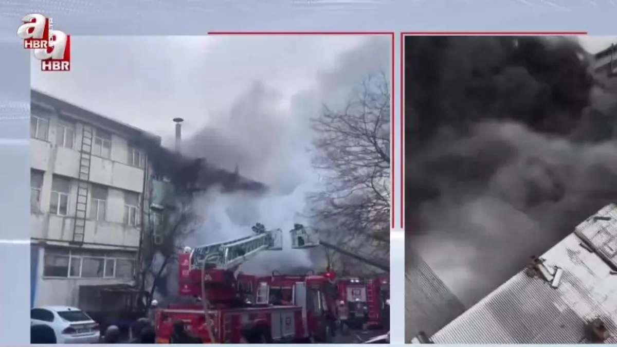 Başakşehir'de 2 katlı kauçuk atölyesinde çıkan yangına, itfaiye ekipleri müdahale ediyor.