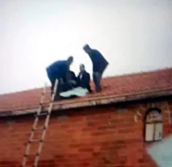 Kazanın etkisiyle araçtan savrulan sürücü ise araçtan savrularak yan tarafta bulunan evin çatısına düştü.