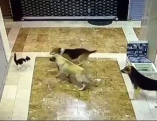 Son dakika haberi... Adana'da bir kedinin yavrusuna saldıran 3 köpeği pişman ettiği anlar saniye saniye güvenlik kamerasına yansıdı. Esnaf Tufan Altunbüken, "Kedi biraz agresif. Yavrusuna saldırıldığını görünce gözünü kırpmadan 3 köpeğe birden saldırdı" dedi.