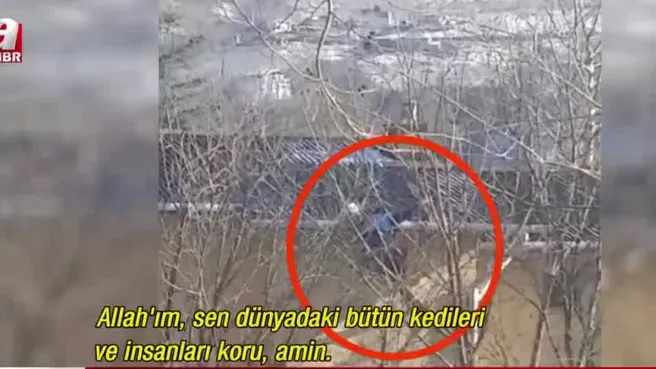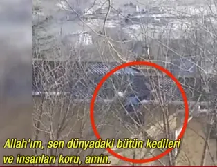 Önce dua etti ardından sevinç gözyaşı döktü. Babasının kediyi kurtarmasını izleyen çocuğun duası yürekleri ısıttı.