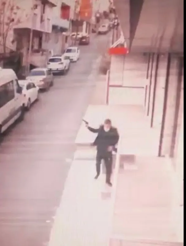 Yaşanan cinayet anı ise yine aynı iş yerinin güvenlik kamerası tarafından saniye saniye kaydedildi. Görüntülerde, şüpheli şahsın korumalarla konuşup tartışması ve ardından korumaların arkasına döndükten sonra 3 el ateş edip yaya olarak kaçması ve ihbar üzerine ambulansın olay yerinde gelmesi görülüyor.