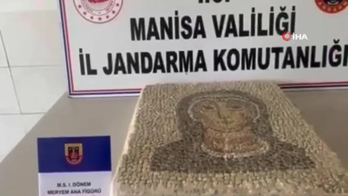 Manisa'da Meryem Ana figürlü mozaik ele geçirildi Manisa'nın Akhisar ilçesinde jandarma ekipleri tarafından bir şahsın evinde yapılan aramada piyasaya 50 milyon TL'ye satılmaya çalışılan 2 bin yıllık Meryem Ana figürlü mozaik ele geçirildi.